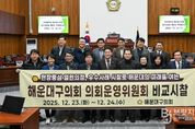브릿지저널 윤나영 기자 | 해운대구의회 의회운영위원회는 지난 12월 23일부터 24일까지 1박 2일간의 일정으로 경주시 일원을 방문해 선진 의회 시설을 비교·분석하고 의정 역량 강화를 위한 벤치마킹을 실시했다. 이번 시찰에는 김상수 의회운영위원장과 해운대구의회 의장을 포함한 의원 10명, 의회사무국 직원 4명 등 총 14명이 참여했다. 시찰단은 24일 오전 경주시의회를 공식 방문하여 약 3년 전 전면 리모델링을 통해 현대화된 청사 시설을 중점적으로 둘러보았다. 시찰단은 특히 본회의장과 각 상임위원회 회의실이 최신식 설비로 갖춰진 점과, 각 상임위원장실이 별도로 마련되어 있고 넓고 쾌적한 의원 사무실이 조성되어 있는 등 의정 활동을 지원하는 인프라가 매우 우수하다는 점에 주목했다. 현장을 둘러본 의원들은" 경주시의회의 경우 상임위원장실과 의원 연구 공간이체계적으로 분리·배치되어 있고, 회의실 시설 또한 현대적으로 개선되어 있어 의정 활동의 효율성을 높이는 데 크게 기여하고 있다"고 평가했다. 또한, 직원들의 사무 공간이 업무 집중도를 높일 수 있도록 효율적으로 배치된 점과 모든 직원이 명