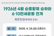브릿지저널 김진석 기자 | 대구문화예술진흥원 박물관운영본부 소속 대구근대역사관은 2026년 대구시민주간 연계행사로 4월 24일 오후 2시에 ‘1926년 4월 순종황제 승하와 6·10만세운동 전개’를 주제로 전문가 특강을 개최한다. 올해 2월 말부터 대구문화예술진흥원 박물관운영본부 소속 대구시립 3개 박물관은 대구시민주간 연계행사로 ‘나라를 지킨 대구, 大邱 정신!’이란 주제로 전문가 특강과 시내 답사, 장거리 답사, 문화공연, 체험학습 등 다채로운 프로그램으로 시민들과 의미 있게 만나고 있다. 대구근대역사관은 ‘대구 독립운동 알기’ 주제 마지막 강연으로, 올해 100주년을 맞는 6․10만세운동을 재조명하는 ‘1926년 4월 순종황제의 승하와 6․10만세운동 전개’를 마련했다. 순종 승하일인 4월 25일에 맞추어 강의 날짜를 정했으며, 강의에서는 순종 장례 전개 과정을 살펴보고 인산일(因山日)에 일어난 6․10만세운동 흐름과 의미를 짚어본다. 특히 대구 독립운동사에서 크게 주목받지 못한 6·10만세운동 전개 과정에서 대구·경북 사람들의 활동에 대해 알 수 있는 좋은 기회가 될 것으로 기대하고 있