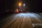 브릿지저널 정보영 기자 | 상주시는 지난 10일 새벽부터 이어진 비와 눈으로 인한 도로 결빙과 폭설에 대비해 야간과 다음날 새벽에 걸쳐 단계별 제설작업을 실시했다. 10일 새벽에 비와 눈이 섞여 내리는 기상 상황 속에서 기온 하강 시 발생할 수 있는 블랙아이스에 선제적으로 대응하기 위해 주요 간선도로와 상습 결빙 구간에 염화칼슘 10톤과 소금 6톤을 미리 살포했다. 이후 같은 날 오후 6시경 기온이 떨어지며 본격적인 강설이 시작되자 즉시 야간 제설작업에 돌입해 출·퇴근 시간대 교통 혼잡과 안전사고를 예방했다. 또한 눈이 쌓인 상태로 밤을 지날 경우 도로 결빙 위험이 커질 것을 고려해, 11일 새벽 인력 24명과 염화칼슘 32톤, 소금 24톤을 추가로 투입하여 2차 집중 제설작업을 실시했다. 읍·면·동 행정복지센터에서도 제설 장비를 동원하여 마을 안길과 이면도로 등 제설 취약 구간을 중심으로 제설작업에 함께 참여했다. 강영석 상주시장은 “기상 여건이 까다로운 상황에서도 제설 시기를 놓치지 않기 위해 직원들이 밤샘 대응에 나섰다”며 “앞으로도 시민 안전을 최우선으로 현장 중심의 행정을 이어가겠다”고 말