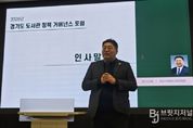 브릿지저널 김경미 기자 | 경기도의회 여성가족평생교육위원회 김진명 의원(더불어민주당, 성남6)이 21일 경기도서관 플래닛홀에서 열린 ‘2026 경기도 도서관 정책 거버넌스 포럼’에 참석해 경기도 도서관의 미래 비전을 제시하고, 도민 중심의 지식 복지 실현을 위한 정책적 지원을 약속했다. 이번 포럼은 도내 도서관 및 독서 정책의 컨트롤타워인 경기도서관의 허브 역할을 강화하고, 지속 가능한 도서관 정책 거버넌스를 구축하기 위해 마련됐다. 포럼에는 경기도의회 최효숙(더불어민주당, 비례)·김재훈(국민의힘, 안양4)·장민수(더불어민주당, 비례) 의원과 윤명희 경기도서관장 및 관계 공무원을 비롯해 공공-작은도서관 관계자, 지역서점 관계자, 독서동아리 회원 등 160여 명이 참석해 뜨거운 관심을 보였다. 김진명 의원은 “도서관은 단순히 책을 빌려보는 공간을 넘어, 도민의 삶을 변화시키고 지역사회를 연결하는 지식 인프라의 핵심”이라며, “이제는 도서관의 양적 확대를 넘어, 도민이 체감할 수 있는 ‘질적 성장’에 모든 역량을 집중해야 할 때”라고 강조했다. 이어 김 의원은 도서관 운영의 핵심 키워드로 ‘거버넌스’를
