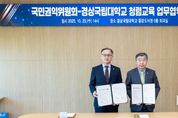 브릿지저널 김경미 기자 | 경상국립대학교와 국민권익위원회는 10월 29일 오후 2시 가좌캠퍼스 도서관 6층 회의실에서 청렴한 미래인재 양성 및 청렴문화 확산을 위해 업무협약을 체결했다. 업무협약 체결식에는 권진회 총장을 비롯해 대학 보직자와 유철환 위원장과 부패방지국장, 대변인, 고충민원심의관, 청렴연수원장 등 10여 명이 참석했다. 행사는 참석자 소개, 각 기관 홍보영상 시청, 인사 말씀, 업무협약 내용 소개, 업무협약 서명 및 교환, 기념 촬영의 순으로 진행됐다. 이번 협약은 대학 내 청렴 가치관 확립과 관련 교육의 체계적 실현을 목표로 하며, 지속 가능한 청렴 교육을 통해 대학생들을 청렴 리더로 양성하는 데 중점을 둔다. 주요 협력 사항으로는 ▲대학생 청렴 가치관 확립을 위한 교육 ▲교직원의 청렴 역량 향상 교육 ▲대학생과 교직원의 고충 상담 및 해소를 위한 협력이 포함된다. 경상국립대학교 권진회 총장은 “청렴은 대학의 사회적 신뢰를 지탱하는 핵심 가치”라며 “우리 대학 학생들이 배움 속에서 청렴을 체득하고, 이를 사회로 확산시키는 청렴인재로 성장하도록 적극 노력하겠다.”라고 말했