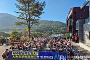 브릿지저널 김경미 기자 | 사천시파크골프협회는 29일 사천 모충파크골프장에서 열린 제1회 사천시장배 파크골프대회에서 ‘사천우주항공 국가철도망 구축’ 캠페인을 전개하며 시민들의 참여 분위기를 확산시켰다. 이번 캠페인은 사천시가 추진 중인 사천우주항공 국가철도망 구축사업의 필요성과 당위성을 시민들에게 널리 알리기 위해 사천시파크골프협회에서 마련한 것. 이번 대회에 참가한 시민과 동호인 250여 명은 대회에 앞서 ‘사천우주항공 국가철도망 구축을 통한 우주항공도시 완성’을 기원하는 서명운동과 홍보 퍼포먼스에 참여했다. 또한, ‘사천우주항공철도! 제5차 국가철도망 구축계획에 반영하라’는 구호도 외쳤다. 사천시는 이번 행사를 통해 지역사회의 자발적인 참여를 통한 철도망 구축 여론 형성의 중요성을 강조하고, 향후 다양한 시민단체와 협력해 캠에인을 지속 확대해 나갈 계획이다. 박동식 시장은 “제1회 사천시장배 파크골프대회의 개최를 진심으로 축하드리며, 앞으로도 파크골프 동호인들의 건강 증진을 위해 다양한 지원에 힘쓰겠다”고 말했다. 이어서 ”사천은 우주항공청 출범과 함께 대한민국 우주항공산업의 중심도