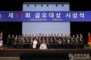 브릿지저널 김진석 기자 | 지역의 봉사단체인 사단법인 금오회는 11월18일 오전11시 인터불고 엑스코호텔에서 제51회 금오대상 시상식을 열었다. 지난 7월부터 9월까지 대구·경북 소재 각 기관・단체에서 추천을 받은 후보자 가운데 엄정한 심사를 거쳐 12명의 수상자를 선정했다. 수상자는 국가보훈부문 현정자(전몰군경유족회 수성구지회장), 선행청소년부문 조아인(대구명곡초 6학년), 효행부문 한옥자(평리1동 적십자사봉사회), 사회 봉사부문 정명관(의성군 종합자원봉사센터장), 산불방재부문 이찬희(의성소방서 현장대응단장), 사회방재부문 박정하(대구소방안전본부 현장대응과), 국가안전부문 서준영(전 국가정보원), 치안부문 이병조(달성경찰서 형사과), 국가방위부문 이선웅(제50보병사단 군수참모), 국가행정부문 김동욱(대구지방국세청 운영지원과), 방송언론부문 이동욱(경북일보 논설주간), 지방행정부문 박영민(경상북도 행정지원과) 등 12명이다 성달표 회장은 “금오회는 ‘지역을 위해 봉사하자’라는 마음으로 모여 봉사와 나눔의 길을 걷고 있다. 반세기가 넘는 오늘까지의 발자취를 돌아보면 그것은 바로 ‘나눔의 역사’였다.