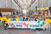 브릿지저널 정보영 기자 | 칠곡군은 추석 명절을 맞이해 2일 왜관시장에서 장보기 및 물가안정 캠페인을 전개하며 주요 성수품 가격 관리와 전통시장 활성화에 나섰다. 이번 행사는 농협군지부, 여성단체협의회, 칠곡군 산림조합, 칠곡군 공무원 등 100여명이 참여했으며, 명절 준비에 나선 군민들에게 전통시장의 따뜻한 정과 편리함을 알리고, 경기 침체와 고물가로 어려움을 겪고 있는 전통시장에 활기를 불어넣고 지역경제 활성화를 위해 마련했다. 김재욱 칠곡군수는 “올해 칠곡사랑상품권 포인트 상향 및 온누리 상품권 환급행사를 통해 군민들의 장바구니 부담을 줄이려고 노력하고 있다”며 “앞으로도 다양한 행사와 지원을 통해 전통시장을 살려 경기침체로 힘든 시기를 보내고 있을 상인들에게 도움이 됐으면 한다”고 밝혔다.