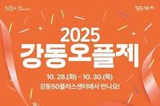 브릿지저널 김경미 기자 | 강동구는 오는 10월 28일부터 30일까지 3일간, 강동50플러스센터(올림픽로 752, 천호동)에서 ‘2025 강동오플제’를 개최한다고 24일 밝혔다. 이번 행사는 ‘세대를 잇는 배움, 모두의 축제’를 슬로건으로, 중장년 세대의 배움과 도전의 결실을 지역사회와 공유하고 세대 간 교류의 장을 마련하기 위해 기획됐다. 올해로 4회째를 맞는 ‘강동오플제’는 지난해 1,500여 명이 참여하는 등 큰 호응을 얻었으며, 올해는 46개 프로그램으로 확대 운영해 한층 다채로운 축제로 꾸며진다. 주요 프로그램으로는 TV 프로그램 ‘이혼숙려캠프’로 잘 알려진 이호선 교수의 특강 ‘새로운 시작 앞에 선 당신에게’를 비롯해, 국경없는의사회 해외 구호활동가 채용설명회, 무인점포 창업설명회 등 중장년 세대의 관심 분야를 반영한 교육 및 일자리 체험이 진행된다. 행사장에는 웰컴존·포토존·건강존·힐링존·메타버스존 등 테마존을 운영해 모든 세대가 함께 즐길 수 있는 다채로운 공간을 선보인다. 또한, ‘정성으로 거르는 전통주’, ‘취향으로 빛나는 와인’ 등 원데이 클래스와 함께 1:1 마을