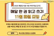 브릿지저널 김경미 기자 | 인천광역시교육청계양도서관은 인천시민을 대상으로 11월 7일부터 21일까지 시민저자학교 2기 프로그램 ‘매달 한 권 읽고 쓰기’를 운영한다. ‘매달 한 권 읽고 쓰기’는 한 권의 책을 깊이 읽고 그 안에서 발견한 생각과 감정을 글로 표현하는 시민 창작형 독서 프로그램으로 11월의 주제 도서는 김금희 작가의 ‘대온실 수리 보고서’이다. 참가자들은 작품을 중심으로 서로의 다름을 이해하고 글쓰기를 통해 자신과 세상을 성찰하는 시간을 갖는다. 참가 신청은 10월 27일부터 오전 9시부터 계양도서관 누리집에서 가능하며, 자세한 내용은 누리집 공지사항을 참고하거나 종합자료실로 문의하면 된다.