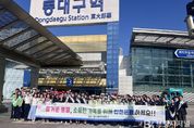 브릿지저널 김진석 기자 | 대구 동구청은 지난 1일, 동대구역 광장 일원에서 민족고유의 명절인 추석을 맞아 안전하고 편안한 귀성길을 위한 ‘추석맞이 교통안전 캠페인’을 실시했다. 대구시를 비롯해 동부경찰서, 교통봉사단체 60여명이 참여한 가운데 △전 좌석 안전띠 착용 △안전속도 및 신호 준수 △음주운전 금지 △졸음운전 예방 등 교통안전 수칙과 선진 교통문화 정착을 위한 홍보활동을 전개했다. 한편, 동구청은 추석 연휴기간 특별교통대책을 수립하여 교통상황실 운영, 공영주차장 무료개방, 전통시장 주변 불법주정차 단속완화, 자전거 수리센터 운영 등으로 귀성객과 주민들의 불편함이 없도록 최선을 다할 예정이다. 윤석준 동구청장은 “이번 추석은 예년에 비해 연휴기간이 길어 귀성객과 나들이객으로 교통이 혼잡할 것으로 예상되기에, 가족과 함께하는 안전하고 따뜻한 명절이 될 수 있도록 모두가 교통 안전수칙을 반드시 준수해달라”고 말했다.