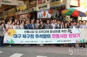 브릿지저널 김진석 기자 | 대구 북구청은 민족 고유 명절인 추석을 앞두고 10월 1일 14시 30분부터 팔달신시장에서 구청장과 간부공무원 등 50여 명이 참여하여 장보기 행사를 가졌다. 해마다 명절이면 온라인 쇼핑몰, 대규모 유통업체 등 이용으로 위축된 전통시장에 활력을 불어넣고자 장보기 행사를 개최했다. 이날 장보기 행사에는 배광식 북구청장을 비롯한 구청 실·과장 이상 간부공무원과 참여 희망 직원 등 50여 명이 자율적으로 참여하여 전통시장 곳곳을 돌며 제수용품과 다양한 먹거리를 구입하면서 각 상인들과는 전통시장의 상황 등을 소통하고, 시장을 찾는 주민들에게는 온누리상품권 환급행사와 시장 홍보 활동도 병행했다. 배광식 북구청장은 “추석을 맞이하여 물가상승과 경기침체로 어려움을 겪고 있는 전통시장에 활력을 불어넣고 상인들에게 조금이라도 도움이 되고자 장보기 행사를 마련했다.”며, “이번 행사를 계기로 더 많은 주민들이 전통시장을 이용하고, 추석 연휴 동안 가족들과 즐거운 명절을 보내시길 바란다.”고 전했다.
