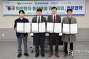 브릿지저널 김진석 기자 | 대구 동구청은 지난 2월 27일, 강남종합병원, 든든한병원, 안심요양병원 등 관내 3개 의료기관과 함께 ‘퇴원 환자 통합돌봄 연계 의뢰’를 위한 업무협약을 체결했다. 이번 협약은 ‘의료·요양 등 지역돌봄 통합지원에 관한 법률’ 시행에 맞춰 65세 이상 어르신 중 병원에서 수술 또는 치료 후 안정적으로 정착할 수 있도록 재가 생활에 필요한 의료·돌봄 서비스를 지원하기 위해 마련됐다. 협약에 따라 △통합돌봄 사업 홍보 △퇴원환자 연계 의뢰 △지역주민 건강증진 관련 자료 공유 등 사업 운영 전반에 걸쳐 상호 협력하기로 했다. 윤석준 동구청장은 “앞으로도 구민들이 평소 살던 곳에서 안심하고 노후를 보낼 수 있도록 사람이 머무는 동구 돌봄 마을로 견고하게 구축해 나가겠다.”고 말했다.