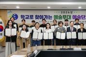 브릿지저널 정보영 기자 | 대전시교육청은 2월 24일 오후 3시, ‘2026년 학교로 찾아가는 예술무대’의 원활한 추진을 위해 20개 예술단체와 업무협약을 체결했다. 이번 협약은 지역 예술인과의 긴밀한 협력을 바탕으로 학교예술교육의 내실을 다지고, 학생들에게 문화예술을 향유할 수 있는 기회를 확대하기 위해 마련됐다. '학교로 찾아가는 예술무대'는 2015년 음악공연 중심의 ‘찾아가는 음악회’로 시작해 2018년 미술·무용·연극 등으로 분야를 확대하면서 현재의 사업명칭으로 변경됐으며, 2025년까지 총 636교에서 예술 공연을 실시했다. 2026년에는 초·중·고 120교를 대상으로 총 2억 1,600만원의 사업비를 지원하여 운영할 계획이다. 오페라, 퓨전국악, 클래식 앙상블, 창작뮤지컬, 연극, 전통예술 등 다양한 장르의 공연을 통해 학생들에게 폭넓고 수준 높은 예술체험 기회를 제공할 예정이며, 단순한 관람을 넘어 예술가와 직접 소통하면서 예술의 즐거움을 체험할 수 있는 참여형·체험형 프로그램을 강화해 운영할 방침이다. 대전오페라단 지은주 대표는 “학교로 직접 찾아가 학생들과 가까이에서