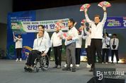 브릿지저널 윤나영 기자 | 전북 고창군이 26일 오후 고창군립체육관에서 ‘제19회 전북특별자치도장애인체육대회’ 개회식을 성대하게 개최하고 본격적인 대회의 시작을 알렸다. 이번 장애인체전은 ‘행복도시 고창에서 감동가득 희망체전’이라는 슬로건 아래 28일까지 고창군 일원에서 열린다. 전북 14개 시군에서 선발된 약 2000명의 선수단과 임원이 참가해 게이트볼, 태권도, 보치아, 탁구, 론볼 등 15개 종목에서 갈고닦은 기량을 겨루며 열정과 도전의 스포츠 정신을 펼칠 예정이다. 개회식은 고창군을 대표하는 장애인 문화예술단체 디새온의 가야금과 하모니카 연주로 화려하게 막을 올렸으며, 14개 시군 선수단의 입장식이 힘차게 진행됐다. 이어 고창군장애인체육회 정종만 부회장의 개회선언과 심덕섭 고창군수의 환영사, 주요내빈의 축사가 이어지며 대회의 열기와 감동을 더했다. 대회기 게양, 선수·심판 대표 선서 등 공식행사도 차례로 진행됐으며 인기가수 윤수현과 최재명의 축하무대도 관람객의 큰 호응을 이끌어내며 개회식 분위기를 한층 고조시켰다. 심덕섭 고창군수는 “이번 대회는 장애인 체육 발전은 물론, 고창군
