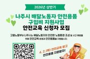 브릿지저널 김경미 기자 | 전남 나주시가 교통사고 위험에 노출된 배달노동자의 안전을 강화하고 사고 예방을 위한 지원에 나선다. 나주시는 배달노동자의 안전한 노동환경 조성을 위해 배달노동자 안전용품 구입비 지원사업을 추진하고 이륜차 교통안전교육을 실시한다고 18일 밝혔다. 시는 2025년에 이어 2026년에도 고용노동부 ‘취약노동자 일터개선 지원사업’ 연장 심사 선정됨에 따라 상반기 사업을 추진하며 나주시에 거주하는 배달노동자 20명을 대상으로 안전용품 구입비를 1인당 최대 20만 원까지 지원한다. 이번 사업은 배달 과정에서 발생할 수 있는 이륜차 교통사고를 예방하고 배달노동자의 안전한 노동환경을 조성하기 위해 마련됐다. 안전교육은 한국도로교통공단 광주전남지부 전문 강사를 초빙해 실제 사고 사례 중심의 이륜자동차 교통안전교육으로 진행된다. 교육을 2시간 이수한 배달노동자에게는 헬멧과 오토바이 블랙박스, 헬멧용 블루투스 헤드셋 등 안전용품 구입비를 지원한다. 지원 대상은 공고일 기준 나주시에 주민등록 주소를 두고 활동 중인 배달노동자로 배달대행업체 소속 기사뿐 아니라 사업장에서