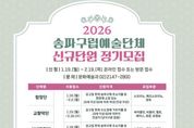 브릿지저널 김경미 기자 | 서울 송파구는 지역 문화예술 저변 확대와 구민의 문화 향유 기회 제공을 위해 오는 2월 19일까지 구립문화예술단체 신규단원을 공개 모집한다고 밝혔다. 현재 송파구는 서울시 자치구 중 가장 많은 총 8개의 구립문화예술단체를 운영하고 있다. ▲교향악단 ▲합창단 ▲실버합창단 ▲실버악단 ▲민속예술단 ▲청소년교향악단 ▲소년소녀합창단 ▲극단으로 구성되어 있으며, 어린이부터 어르신까지 전 세대가 어우러져 활동 중이다. 올해는 실버악단을 제외한 7개 단체에서 신규단원을 선발한다. 모집 기간은 단체별로 상이하며, 최대 2월 19일까지다. 입단을 희망하는 구민은 송파구청 홈페이지 고시·공고란에서 단체별 자격 조건과 모집 부문을 확인한 후, 응시 서류를 작성해 이메일로 제출하거나 송파구청 문화예술과로 방문 접수하면 된다. 선발 절차는 1차 서류 심사와 2차 실기 및 면접(오디션)을 거쳐 최종 합격자를 결정한다. 단원으로 위촉되면 '한성백제문화제', '석촌호수 벚꽃축제' 등 송파구의 대표 축제 무대에 서게 되며, 롯데콘서트홀과 송파문화예술회관 등에서의 정기 공연 기회도 주어진다.