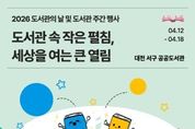 브릿지저널 정보영 기자 | 대전 서구 공공도서관(갈마·가수원·둔산·월평·어린이도서관)은 내달 12일부터 18일까지 ‘도서관 속 작은 펼침, 세상을 여는 큰 열림’을 주제로 다양한 독서 문화 프로그램을 운영한다. 이번 프로그램은 도서관의 날(4월 12일)과 도서관 주간(4월 12~18일)을 맞아 기획됐다. 기간 동안 기념 공연으로 △갈마도서관 ‘국악으로 만나는 K-MUSIC’ △가수원도서관 ‘현 작가의 베스트셀러(독서 권장 마술쇼)’ △월평도서관 ‘드로잉 매직쇼: 크레용용’ 등이 열린다. 또한 모든 도서관에서 체험 활동인 ‘페이퍼 플라워 원데이 클래스’·동화 속 머그잔 만들기, 이벤트 활동인 그림책 원화 전시·사서 북 큐레이션(온오프라인)·도서 두 배 대출·독서 명언 포춘쿠키 등이 진행된다. 공연 및 체험 프로그램은 내달 1일 오전 10시부터 각 도서관 홈페이지에서 선착순 모집하며, 원화 전시 등 이벤트는 기간 중 누구나 참여할 수 있다.