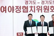 브릿지저널 김경미 기자 | 경기도의회 국민의힘은 4일, 도의회 예담채에서 열린 ‘제1차 도의회-도 여야정협치위원회 전체회의’에서 ‘2026년도 본예산 협치예산’ 및 ‘특별조정교부금 제도 개선’에 합의했다고 밝혔다. 이날 행사에는 도의회에서 백현종 국민의힘 대표의원과 김진경 의장, 최종현 더불어민주당 대표의원을 비롯해 양당 총괄수석부대표와 수석정책위원장 및 수석대변인이 참석했다. 경기도에서는 김동연 도지사와 고영인 경제부지사를 포함해 협치수석, 기획조정실장, 균형발전기획실장 등이 자리했다. 이번 전체회의는 지난 8월 출범한 도의회-도 여야정협치위원회 협약식과 현판식에 이은 첫 번째 만남이다. 행사는 경과보고 및 ▲도-도의회 2026년 본예산 협치예산 합의문 ▲도-도의회 특별조정교부금 제도 개선 합의문 내용에 관한 설명이 이어진 후 양당 대표의원과 경제부지사가 합의문에 서명하는 것으로 진행됐다. 도-도의회 2026년 본예산 협치예산 합의문의 골자는 ▲도민 생활 안정과 지역경제 회복 추진 ▲따뜻한 복지 환경 조성 ▲도민 이동권 확대 ▲지속 가능한 성장 기반 마련 ▲재난 및 기후 위기 선제적 대응이다. 특