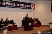브릿지저널 김경미 기자 | 충북 영동군은 3일, 유원대학교 영동캠퍼스 심우관 합동 강의실에서 열리는 2026학년도 입학식에 참석해 신입생들의 새로운 출발을 축하했다. 앞서 지난 2월 10일에는 유원대학교 제29회 전기 학위수여식이 개최된 가운데, 정영철 영동군수가 직접 참석해 영동캠퍼스 졸업생 523명의 졸업을 축하하고, 축사를 통해 지역과 대학의 상생협력 의지를 강조한 바 있다. 이날 행사에는 이택수 영동부군수를 비롯해 신현광 영동군의회 의장 등 주요 내빈이 함께 자리해 신입생들의 입학을 축하하고, 지역과 대학이 함께 만들어가는 미래 비전을 공유했다. 이택수 영동부군수는 축사를 통해 영동군과 유원대학교가 긴밀한 협력을 바탕으로 지역 인재를 육성해 온 성과를 강조하고, 앞으로도 지속적인 상생 협력을 이어가겠다는 뜻을 밝혔다. 한편, 2026년 전체 입학정원 875명 가운데 460명이 영동캠퍼스에 입학함에 따라, 지역 캠퍼스는 안정적인 운영 기반을 유지하고 있다. 이는 지역사회와 대학이 함께 신뢰를 쌓아온 결과로 평가된다. 영동캠퍼스 입학생 460명 중 영동군민은 63명으로 13.7%를