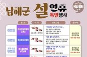 브릿지저널 김경미 기자 | 남해군은 2026년 설 연휴를 맞아 관광객과 향우, 귀성객을 위해 관내 주요 관광지 곳곳에서 다양한 특별행사와 이벤트를 마련했다고 3일 밝혔다. 먼저 올해 설 연휴 특별행사의 일환으로 인기 관광지 12개소에서 진행되는 ‘국민쉼터, 남해 찍고 가요’ 스탬프 투어 이벤트가 1월 23일부터 3월 31일까지 열린다. 참가자는 남해군의 주요 관광지 12개 지역 중 3곳을 방문해 관광지에 마련된 스탬프를 찍으면 소정의 경품을 받을 수 있다. 본격적인 설 연휴인 2월 14일부터 22일까지는 주요 관광지에서 ‘남해 틀린 그림 찾기’ 이벤트가 진행돼, 틀린 그림 찾기 미션을 성공하면 남해 기념품을 받을 수 있다. 남해 원스톱플랫폼 낭만남해에서는 2월 9일부터 22일까지 ‘설명절 가족이 함께 가고 싶은 남해 카페 7선’ 온라인 댓글 이벤트도 실시된다. 참가자 중 추첨을 통해 낭만남해 숙박권 5만원권(경품)을 증정할 예정이다. 남해군의 전통문화 체험 행사도 마련됐다. 설 연휴 기간(2월 14일~18일, 설 당일 휴무) 동안 이순신바다공원에서는 한복 체험, 연날리기, 윷놀이, 활쏘기, 부채꾸미