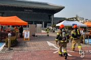 브릿지저널 김경미 기자 | 청주시 문예운영과는 24일 청주예술의전당 일원에서 ‘2025년 문예시설 압사사고 대비 소방훈련’을 실시했다. 이번 훈련에는 시 직원과 청주시립예술단원, 사직119안전센터 등 관계자 200여명이 참여했다. 참여자들은 다중 인파 압사사고를 가정해 자위소방대 조직 및 임무 부여, 소방 훈련, 피난 대피 방법 등에 관한 내용으로 긴급구조훈련을 진행했다. 윤남용 문예운영과장은 “최근 발생한 예술의전당 옥상 화재를 계기로 문예시설 안전사고 예방을 위해 정기적인 점검 및 훈련을 실시할 계획”이라며 “시민들의 안전하고 쾌적한 문예공간 이용에 차질이 없도록 소방훈련 및 시설관리에 최선을 다하겠다”고 밝혔다.