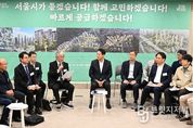 브릿지저널 김경미 기자 | 오세훈 서울시장이 16일 오전 10시 서울시청 간담회장(8층)에서 ‘서울시 정비사업연합회’ 소속 주민대표들과 ‘주택공급 활성화를 위한 민‧관정책협의회’를 개최했다. ‘서울시 정비사업연합회’는 신속통합기획 재개발·재건축 구역 주민대표 63명으로 구성된 자발적 민간협의체다. 구역별 정비사업 추진과정을 공유하고 정책‧제도 개선 사항 논의가 운영 목적이다. 이날 간담회는 오세훈 서울시장을 비롯해 김병민 정무부시장, 최진석 주택실장, 김준형 주택정책수석 등 서울시의 주택정책과 정비사업을 담당하는 간부들이 참석했고, 연합회 측에서는 김준용 서울시 정비사업연합회 회장(대림1구역)과 정비구역을 대표하는 34명이 참석했다. 오 시장은 “서울시는 신속통합기획 등을 통해 불필요한 절차와 과정을 줄여 정비사업 기간을 6년 6개월 단축하는 기반을 마련하는 등 주택공급 활성화 정책을 지속적으로 추진하고 있다”며 “서울시가 재개발, 재건축에 공을 들이고 애를 쓰는 이유는 신규주택을 꾸준히 공급하고 유지해야 주택시장이 안정화될 수 있고, 특히 서울의 경우는 더욱 그렇다”라고 말했다. 이어 “어제 정