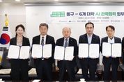 브릿지저널 정보영 기자 | 대전 동구는 25일 대전대학교, 우송대학교, 대전과학기술대학교, 대전보건대학교, 우송정보대학, 한국폴리텍Ⅳ대학 대전캠퍼스와 ‘인공지능(AI) 기반 지역혁신을 위한 관학협력 업무협약’을 체결했다고 밝혔다. 이날 협약식에는 박희조 동구청장을 비롯해 남상호 대전대학교 총장, 진고환 우송대학교 총장, 이정화 대전보건대학교 총장, 손동현 우송정보대학 총장, 양형규 한국폴리텍Ⅳ대학 대전캠퍼스 학장 등 주요 관계자들이 참석해 협력 의지를 다졌다. 이번 협약은 AI 기술을 행정과 지역사회 전반에 접목해 공공 서비스의 질을 높이고, 지역 대학과의 협력을 통해 연구·교육·정책을 유기적으로 연계하기 위해 추진됐다. 협약에 따라 각 기관은 ▲AI 기반 행정 혁신 및 지역문제 해결을 위한 공동사업 추진 ▲AI 인재 양성 교육 ▲대학생 취·창업 연계 ▲주민 대상 AI 기초교육 및 체험 운영 등을 중심으로 협력 사업을 본격 추진할 계획이다. 또한, 구는 이를 바탕으로 행정 혁신을 한층 가속화하고, 지역 미래인재 양성과 산업 경쟁력 강화를 위한 기반을 단계적으로 확충해 나갈 방침이다. 박희조 동구청장