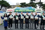 브릿지저널 정보영 기자 | 영천시는 샤인머스캣 가격 하락으로 어려움을 겪고 있는 지역 농가를 돕기 위해, 27일 시청 주차장에서 ‘영천 샤인머스캣 소비촉진행사’를 개최했다. 이번 행사는 영천시, 영천시의회, NH농협은행 영천시지부, 영천시조합공동사업법인이 공동 주최했으며, 공무원과 관내 유관기관이 솔선수범해 지역 농가와 상생하는 착한 소비문화를 확산하고자 마련됐다. 행사에 앞서 시청 직원과 관내 기관·단체를 대상으로 진행한 사전 예약판매에서는 샤인머스캣 1.5kg 1,034박스가 접수되며 큰 호응을 얻었다. 행사 당일에는 영천상공회의소 등 주요 기관과 시민들의 참여가 이어져, 준비된 현장판매 물량 700박스를 포함한 총 1,734박스가 모두 판매돼, 행사에 대한 시민들의 높은 관심을 확인할 수 있었다. 또한, NH농협은행 영천시지부의 우리쌀 떡 나눔행사와 대한한돈협회 영천시지부의 한돈 소비촉진행사도 함께 진행돼, 지역 농·축산물 소비 촉진의 의미를 더했다. 이와 함께 장학금 기탁식도 진행됐다. 영천농산물도매시장㈜과 영천시 농식품가공협의회가 각 500만원을 기탁해, 지역 인재 육성에 힘을 보탰다. 전
