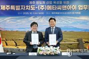 브릿지저널 정보영 기자 | 인공지능(AI) 시스템반도체 강소기업 ㈜메타씨앤아이가 제주로 본사를 이전하며 제주특별자치도와 함께 첨단 반도체 산업 생태계 구축을 위한 협력을 시작했다. 제주도는 1일 오후 도청 백록홀에서 인공지능(AI) 시스템반도체 기업인 메타씨앤아이와 업무협약을 체결했다. 이번 협약은 메타씨앤아이가 지난 8월 말 제주로 본사 주소를 이전한 데 이어, 제주가 첨단전략산업 거점으로 도약하기 위해 민선 8기 도정이 중점 추진해온 ‘상장기업 육성 및 유치’ 노력의 결실이라는 점에서 의미가 크다. 메타씨앤아이는 스마트폰 디스플레이용 초저전력 인공지능(AI) 시스템반도체를 설계하는 반도체칩 설계 전문 팹리스(Fabless) 기업이다. 스마트폰 디스플레이용 인공지능(AI) 시스템반도체와 초고해상도 마이크로디스플레이 저전력 설계 기술을 바탕으로, 2024년 '포브스코리아'의 ‘대한민국 파워 혁신기업 30-반도체 섹터’에서 삼성전자·SK하이닉스에 이어 선정될 만큼 기술력과 성장 잠재력을 인정받은 강소기업이다. 특히 정민철 대표는 2000년부터 5년간 메모리 반도체업체 제주반도체에 근무했