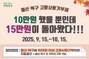 브릿지저널 윤나영 기자 | 울산 북구는 추석을 맞아 고향사랑기부제 이벤트를 실시한다고 16일 밝혔다. 지난 15일부터 다음달 15일까지 북구에 10만원 이상 기부한 고향사랑기부자 대상 세액공제와 답례품 제공 외 30명을 추첨해 2만원 상당의 모바일쿠폰을 지급한다. 당첨자는 20일 북구청 누리집을 통해 확인할 수 있으며, 개별 문자로도 안내한다. 고향사랑기부제는 개인이 현재 주소지를 제외한 타 지방자치단체에 기부하면 기부자에게 세액공제 혜택과 답례품을 제공하는 제도로, 북구는 돌미역, 참가자미, 쌀, 한우, 한돈, 울산페이, 울산회시장 이용권, 캔밀키트, 캡슐커피, 울산숲빵 등 다양한 답례품을 제공하고 있다.