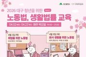 브릿지저널 김진석 기자 | 대구광역시는 지역 청년들의 노동권 보호와 법적 권리 인식 제고를 위해 ‘대구 청년을 위한 노동법·생활법률 교육’을 오는 4월부터 본격 추진한다. 이번 교육은 대구 미취업 청년, 사회 초년생, 청년 창업가를 대상으로 하며 2026년 4월부터 11월까지 총 3개 시즌으로 나눠 운영된다. 시즌별 4회씩, 총 12회의 전문가 교육 프로그램이 진행될 예정이며, 시즌1 교육 프로그램은 4월 2일부터 4월 23일까지 매주 목요일 오후 7시부터 9시까지 진행된다. 교육 내용은 청년들의 취업 전·후, 퇴사 시, 창업 등 진로 선택에 맞춰 구성돼 근로계약서 작성, 최저임금, 연차 사용 등 노동법과 임대차계약, 부동산 권리, 저작권 등 생활법률 정보를 제공하는 데 중점을 둔다. 특히 강의와 함께 질의응답 및 상담도 병행해 참여자들이 실제로 겪는 법률 문제에 대해 실질적인 도움을 받을 수 있도록 구성했다. 아울러 청년들의 관심이 높은 주요 법률 이슈를 보다 쉽게 이해할 수 있도록 명사 초청 방식의 청년 법률특강도 2회 진행할 예정이다. 교육은 대구시청년센터 공감그래에서 진행되며,