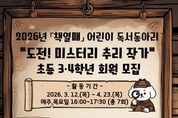 브릿지저널 김경미 기자 | 인천광역시교육청주안도서관은 오는 23일부터 초등 3~4학년 학생을 대상으로 ‘책열매’ 독서동아리 회원을 모집한다. ‘도전! 미스터리 추리 작가’를 주제로 한 이번 프로그램은 어린이가 독서지도 전문 강사의 지도 아래 꾸준한 독서 습관을 기르고, 또래 친구들과 책으로 소통하는 경험을 쌓을 수 있도록 마련했다. 프로그램은 매주 미스터리 주제의 다양한 책을 읽고 수수께끼 만들기, 탐정일지 쓰기, 같은 시작 다른 결론, 뒷이야기 쓰기 등의 활동을 하며, 학생들이 직접 추리 동화를 창작하는 과정으로 3월 12일부터 4월 23일까지 운영한다. 모집은 2월 23일 오전 10시부터 주안도서관 누리집에서 선착순 진행하며, 자세한 내용은 주안도서관 누리집을 확인하거나 어린이자료실로 문의하면 된다.