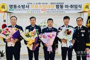 브릿지저널 김경미 기자 | 영동소방서는 9일 영동읍 부용리 소재 여성회관에서 영동의용소방대장 합동 이·취임식 행사를 개최했다. 이번 행사는 전임 의용소방대장의 노고를 치하하고, 신임 의용소방대장의 앞날을 축복하고 격려하기 위해 의용소방대원 등 소방가족 150여 명이 참석한 가운데 진행됐다. 이날 이임하는 서제원(63, 남)황간남성의용소방대장, 송일남(52, 남)용산의용소방대장, 정재만(56, 남)심천의용소방대장은 그동안 지역사회 안전에 이바지한 공로를 인정받아 공로패를 전수 받았다. 또한 새로 취임하는 민창기(55, 남)영동남성의용소방대장, 손기진(60, 남)황간남성의용소방대장, 김광현(58, 남)용산의용소방대장, 이내응(56, 남)심천의용소방대장은 대원들 사이에 두터운 신뢰와 함께 지도력과 통솔력을 인정받아 이번 신임 대장에 취임하게 됐다. 한편 영동소방서 의용소방대는 13개대 321명으로 구성되어 있으며, 화재 진압은 물론 전문강사 양성을 통한 주민 안전 교육, 주택용소방시설 설치 참여, 불우이웃 성금 기부 등 지역 사회 안전문화를 선도하고 있다. 이도형 서장은 “바쁜 생업에도 화재
