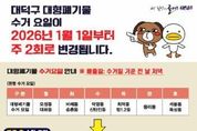 브릿지저널 정보영 기자 | 대전 대덕구는 주민 생활편의를 높이고 불법투기를 예방하기 위해 2026년 1월부터 대형폐기물 수거일을 동별 주 2회로 확대 운영한다. 그동안 대덕구는 대형폐기물을 주 1회 수거해 왔으나, 배출 시기와 수거 일정이 맞지 않아 주민 불편이 이어져 왔다. 이에 구는 주민 의견과 현장 여건을 반영해 모든 동을 대상으로 주 2회 수거 체계로 전환하기로 했다. 수거는 월요일부터 토요일까지 평일 기준으로 운영되며, 동별 수거 요일은 대덕구 누리집과 행정복지센터 게시판, 안내 현수막 등을 통해 사전에 안내된다. 신청 방법은 기존과 동일하게 인터넷 배출신고(대덕구 홈페이지) 또는 전화 접수를 통해 가능하며, 대덕구 자원순환센터가 수거를 담당한다. 수거 대상은 가구, 가전제품, 이불 등 종량제 봉투로 배출이 어려운 대형 폐기물로, 신고 후 스티커를 부착하면 된다. 대덕구는 이번 수거 주기 확대를 통해 장기간 배출 대기 문제를 해소하고 무단투기와 방치 사례가 크게 줄어들 것으로 기대하고 있다. 최충규 대덕구청장은 “주민이 체감하는 생활환경 개선이 무엇보다