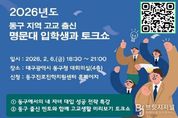 브릿지저널 김진석 기자 | 대구 동구청은 오는 6일 오후 6시 30분, 동구청 4층 대회의실에서 관내 학생 및 학부모를 대상으로 ‘2026 내 자녀 대입 성공 전략 특강 및 멘토와 함께 고교생활 미리보기 토크쇼’를 개최한다. 이번 행사는 변화하는 대학 입시 환경을 미리 이해하고, 자신의 진로와 학습 방향을 주도적으로 설계할 수 있도록 지원하기 위해 마련됐으며, 특히 최신 대입 제도와 고교 생활 전반에 대한 이해를 높이는 실질적인 정보를 제공하는 데 중점을 뒀다. 1부 특강에서는 동구진로진학지원센터장이 강연자로 나서, 최근 대입 제도의 주요 변화와 함께 학생 수준과 성향에 맞는 학습 전략, 진로 설계 방법 등을 강연한다. 이어지는 2부 토크쇼에서는 동구 지역 출신 예비 대학생 멘토 5명이 참여해 고등학교 시절의 학습 경험, 입시 준비 과정 등을 솔직하게 공유하며, 학생들이 궁금해하는 고교생활 전반에 대해 자유로운 소통의 시간을 갖는다. 윤석준 동구청장은 “입시는 학생 개개인의 적성과 방향을 함께 고민하는 과정”이라며, “이번 행사가 학생들에게 진로를 구체화하는 실질적인 길잡이가 되기를 기대한다. 동구