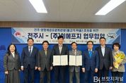 브릿지저널 윤나영 기자 | 전주시가 전주한옥마을 인근에 시민과 관광객을 위한 새로운 관광·여가시설을 조성하기 위해 민간기업과 손을 맞잡았다. 시는 18일 시청 3층 소회의실에서 윤동욱 전주 부시장과 류병덕 ㈜이에프지 대표 등이 참석한 가운데 ‘생명체 공유 문화관광(물고기마을)’ 사업 추진을 위한 업무협약을 체결했다. 이번 협약은 지역 관광 활성화와 지역경제에 활력을 불어넣기 위해 관광·여가시설인 ‘물고기마을 테마파크’를 조성해 시민들에게 새로운 휴식 공간을 제공하는 것이 핵심이다. 이날 협약에 따라 시는 사업이 원활히 추진될 수 있도록 인허가 등 행정절차 지원에 협력하고, ㈜이에프지는 관광시설 조성을 위한 사업비 투자와 함께 지역 관광 활성화에 기여하기로 했다. 특히 시와 ㈜이에프지는 시설 조성 이후 운영 인력 채용 시 전주시민을 우선 채용하고 지역공동체를 구성하는 등 지역과 기업이 함께 상생하는 모델을 만들어 나갈 계획이다. 윤동욱 전주시 부시장은 “이번 협약을 통해 시민과 관광객이 함께 즐길 수 있는 새로운 관광 콘텐츠가 마련되길 기대한다”면서 “앞으로도 민간과 협력해 전주 관광 경