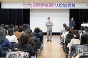 브릿지저널 김경미 기자 | (재)광명문화재단은 3월 11일 수요일 광명시민회관 리허설룸에서‘2026년 광명문화재단 사업설명회’를 성황리에 개최했다고 밝혔다. 이번 설명회는 재단 사업에 관심있는 참여자들에게 재단의 2026년 비전과 중점 추진 방향을 공유하고, 지역문화, 공연·전시, 문화예술교육 및 지원 등 분야별 주요 사업을 소개하기 위해 마련됐다. 특히 재단에서 추진하는 공모사업은‘2026 광명문화재단 문화예술지원사업 통합공모’로 소개됐으며, 부서별 사업 설명을 통해 각 사업의 주요 내용과 운영 일정, 신청 방법 등을 상세히 안내했다. (재)광명문화재단 송은영 대표이사는 “이번 설명회는 재단이 준비한 다양한 사업을 시민 여러분께 직접 소개하고 의견을 나눌 수 있는 뜻깊은 자리였다”며 “앞으로도 더 많은 분들이 재단 사업에 관심을 갖고 편하게 참여할 수 있도록 노력하겠다”고 밝혔다. 지역 예술인과 문화예술 관계자, 시민 등 80여 명이 참석한 이번 설명회는 재단 사업에 대한 높은 관심을 확인 할 수 있는 자리였으며 촬영한 영상은 향후 광명문화재단 공식 유튜브 채널을 통해 확인할 수 있다.