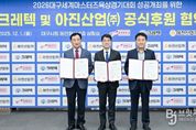 브릿지저널 김진석 기자 | 2026대구세계마스터즈육상경기대회 조직위원회는 12월 1일 오전 10시 30분, 대구광역시청 동인청사에서 지역 우량기업인 크레텍 및 아진산업㈜과 공식 후원 협약을 체결했다. 이날 협약식에는 김정기 대구광역시장 권한대행 겸 조직위원장, 최영수 크레텍 대표이사 회장, 서중호 아진산업㈜ 대표이사, 진기훈 조직위 사무총장 등이 참석해 대회의 성공적 운영을 위한 재정적 지원과 상호 협력 의지를 다졌다. 후원에 참여하는 크레텍은 국내 최대 산업공구 기업으로, 지난해 중견기업 최초로 한국서비스대상 명예의 전당에 헌정됐다. 아진산업㈜은 자동차부품 분야에서 혁신과 기술개발을 선도하는 지역 대표 글로벌 중견기업으로, 지난해 4억 불 수출탑을 수상한 바 있다. 이번 협약을 통해 크레텍과 아진산업㈜은 대회가 종료되는 내년 9월 3일까지 공식 후원사 지위를 가지게 되며, 공식 후원사 명칭 사용권, 후원사 마케팅 지원, 개·폐회식 초청, 후원사 전용공간 제공, 감사패 수여 등 다양한 예우를 제공받게 된다. 한편, 세계마스터즈육상경기대회(WMAC)는 35세 이상의 생활체육인이 참가하