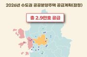 브릿지저널 정보영 기자 | 국토교통부와 4개 공공기관은 ’26년 수도권 공공택지에서 총 2.9만호 규모의 공공분양주택을 순차적으로 공급할 계획이라고 밝혔다. 이번 공급 물량은 새정부 「주택공급 확대방안」(9·7대책)에서 발표한 수치(2.7만호) 대비 약 2천호 증가한 규모로, 판교(2.9만호)급 신도시를 하나 새로 조성한 것에 준하는 수준이다. 특히, 4개 공공기관의 올해 분양 물량(2.2만호)보다 32.2% 증가했고, 최근 5년간 평균 수도권 분양 물량(1.2만호)의 약 2.3배 수준으로, 공공 부문의 착공 확대 노력의 성과가 가시화되며, 공급 확대 국면으로 전환되고 있음을 보여준다. 내년에 분양될 단지들을 살펴보면, 지역별로는 △서울 1.3천호, △인천 3.6천호, △경기 23.8천호로 분포되어 있고, 주요 지구별로는 △3기 신도시 7.5천호, △2기 신도시 7.9천호, △기타 중소택지 13.2천호의 공공주택이 분양될 예정이다. 3기 신도시에서는 △고양창릉(3,881호), △남양주왕숙(1,868호), △인천계양(1,290호), 2기 신도시에서는 △광교(600호), △평택고덕(5,134호), △