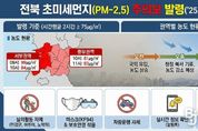 브릿지저널 윤나영 기자 | 전북특별자치도 보건환경연구원은 25일 오전 전북 서부권과 중부권에 국외 오염물질 유입의 영향으로 초미세먼지(PM-2.5) 농도가 높아지며 초미세먼지 주의보를 발령했다고 밝혔다. 초미세먼지(PM-2.5) 주의보는 시간 평균 농도가 2시간 이상 75㎍/㎥을 넘길 때 발령된다. 이날 서부권역은 오전 9시 99㎍/㎥, 10시 84㎍/㎥, 중부권역은 오전 10시 81㎍/㎥, 11시 83㎍/㎥를 기록하며 기준치를 초과했다. 이번 주의보는 중부와 남서부 지역을 중심으로 오전까지 국외 미세먼지가 유입되면서 발령된 것으로 분석된다. 오후부터는 북서쪽에서 비교적 청정한 기류가 유입되며 농도가 점차 낮아질 것으로 예상된다. 전경식 보건환경연구원장은 “공기 중 초미세먼지와 미세먼지 농도가 높아지면 어린이와 노약자, 호흡기·심장 질환자 등 민감군은 물론 일반인도 가급적 실외활동을 자제해야 한다”며 “부득이하게 외출해야 할 경우에는 마스크와 보호안경 등을 착용하고, 대기오염 저감을 위해 차량운행도 가급적 줄여 달라”고 당부했다. 아울러“전북특별자치도 실시간대기정보시스템을 통해 대기환경정보 확인과