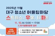 브릿지저널 김진석 기자 | 대구광역시는 11월 15일 오후 1시, 2.28기념중앙공원에서 올해를 마무리하는 ‘청소년 어울림마당’을 개최한다. 특히 이번 행사에서는 수능을 마친 수험생들을 위한 특별한 선물도 준비돼 있다. 대구시가 주최하고 대구행복진흥사회서비스원 청소년활동진흥센터가 주관하는 이번 행사는 청소년들의 자유롭고 창의적인 문화 활동의 장을 마련하기 위해 청소년기획단이 직접 기획하고 운영한다. 이번 11월 청소년 어울림마당은 올해 다섯 번째이자 마지막 행사로, 수험표를 지참한 수험생들에게 특별 선물을 제공하는 이벤트와 함께 다양한 무대 공연과 체험 부스를 운영한다. 오후 1시부터 시작되는 무대 공연에서는 지역 청소년들로 구성된 밴드 무대부터 댄스 퍼포먼스, 비트박스 등 총 18개 팀이 다양한 장르의 공연을 선보일 예정이다. 체험 부스에서는 열전사 사진 체험, 마이디폼블록·쉐이커키링 만들기 등 다양한 활동과 함께 컵케익 데코, 논알콜 칵테일 만들기 등 재밌는 먹거리 체험도 제공된다. 부스에 참가하면 기념품도 받을 수 있다. 박윤희 대구광역시 청년여성교육국장