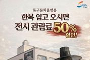 브릿지저널 윤나영 기자 | 부산 동구는 한복 입기 활성화를 위해 한복을 착용하고 방문한 관람객을 대상으로 동구 문화플랫폼 전시 관람료 할인 이벤트를 진행한다. 《불멸의 화가, 반 고흐 레플리카 展》 전시 기간 동안 한복을 입고 방문한 관람객은 정가 대비 50% 할인된 요금으로 전시를 관람할 수 있다. 할인 적용 시 관람료는 성인 5,000원, 청소년 및 어린이 4,000원이며, 다른 할인 혜택과의 중복 적용은 불가하다. 동구 문화플랫폼은 오전 10시부터 오후 7시까지 운영되며, 매주 월요일은 휴관이다. 설날 연휴 기간에는 설 당일인 2월 17일과 19일에 휴관한다. 자세한 사항은 동구청 누리집 및 사회관계망서비스(SNS) 채널에서 확인할 수 있다. 문의는 동구청 문화관광과 및 동구 문화플랫폼으로 하면 된다.