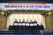 브릿지저널 윤나영 기자 | 강원 남부권 6개 시군(원주·횡성·영월·평창·정선·태백)은 24일 오전 11시, 호텔인터불고 원주에서 국토교통부의 ‘제7차 공항개발 종합계획’에 ‘원주(횡성)공항의 국제화 사업 반영’을 요청하는 공동 건의문을 채택했다. 이날 서명식에는 원강수 원주시장, 김명기 횡성군수, 이상호 태백시장, 최명서 영월군수, 심재국 평창군수, 최승준 정선군수 등 강원 남부권 6개 시군의 시장·군수가 모두 참석해 원주(횡성)공항 국제화 추진에 뜻을 모았다. 이번 공동 건의문 채택은 원주(횡성)공항 국제화가 침체된 강원 남부권 경제를 되살리고 공동 번영을 이끌 핵심 인프라라는 인식을 공유하고, 이에 대한 정부의 적극적인 지원과 조치를 요청하기 위해 마련됐다. 건의문의 주요 내용은 ①강원 남부권의 절실한 지역 현안과 새로운 돌파구 필요성 ②원주(횡성)공항의 경제적 파급 효과 ③국토교통부의 선제적 결단 촉구 등이며, 강원특별자치도를 통해 국토교통부에 전달될 예정이다. 원주(횡성)공항의 시설 개선으로 국제선 유치 여건이 갖춰지면, 강원 남부권 지역 경제 활성화는 물론, 수도권과 비수도권 간 격차