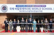 브릿지저널 김진석 기자 | 대구테크노초등학교는 3월 24일 대구시교육청 및 학교 관계자와 지역 인사 등이 참석한 가운데, 국제 바칼로레아(IB) 월드스쿨 인증 선포식을 개최하고 유치원과 초등학교가 연계된 IB PYP 탐구 중심 교육의 도약을 선언했다. 이번 행사는 현판 제막식, IB 월드스쿨 인증 선포식, 수업 참관 순으로 진행됐으며 특히 IB 초등 프로그램(PYP)의 초학문적 주제 중 하나인 ‘우리 모두의 지구(Sharing the Planet)’의 의미를 살려 친환경 행사로 기획하여 일반적으로 행사에서 진행되는 테이프 커팅식 대신, 하나로 이어진 목도리를 내빈들이 함께 분리해 목에 거는 방식의 ‘친환경 테이프 커팅식’을 진행해 행사로 인해 발생하는 쓰레기를 최소화했다. 식전 행사는 초등학생 국악 동아리 ‘테초의 소리’ 공연과 병설유치원 어린이들의 ‘IB 학습자상송’ 합창으로 행사의 문을 열었다. IB 학습자상 송은 테크노초병설유치원 교사들이 작사·작곡하여 학생들이 학습자상을 내면화하는데 도움을 주고자 활용해온 자료이기도 하다. 본 행사는 유·초연계 IB PYP를 가장 대표하는 유치원 유아 3