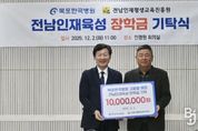 브릿지저널 김경미 기자 | 전라남도는 고광일 목포한국병원 원장은 2일 전남인재평생교육진흥원에 전남인재육성 장학금 1천만 원을 기탁했다고 밝혔다. 전남인재평생교육진흥원 회의실에서 열린 기탁식에는 고광일 원장, 범희승 전남인재평생교육진흥원장 등이 참석했다. 1988년 개설된 목포한국병원은 20개 진료과와 600병상을 갖춘 전남 서부권역 대표 종합병원이다. 2025년 보건복지부 ‘포괄 2차 종합병원 지원사업’에 선정되며 지역 필수의료를 책임지는 핵심 의료기관으로 자리매김했다. 특히 지난 2021년부터 지역 인재 육성을 위해 2천만 원의 장학금을 기탁했으며, 병원 소속 봉사단은 지역 사회복지기관에 생필품 기부활동을 추진하는 등 지역민을 위한 따뜻한 나눔을 이어오고 있다. 범희승 원장은 “연말을 맞아 소중한 장학금을 기탁한 고광일 병원장께 감사드린다”며 “장학금은 전남의 인재가 꿈을 마음껏 펼치면서 성장하도록 뒷받침하는데 소중히 쓰겠다”고 말했다. 이번 기탁금은 전남인재육성장학금 재원으로 사용되며, 재능이 우수하지만 생활이 어려운 초·중·고교생과 대학생들을 위해 쓰이게 된다. &nb