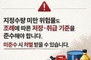 브릿지저널 윤나영 기자 | 전북특별자치도소방본부는 급속한 연소 확대로 인명 피해가 우려되는 위험물 사고를 예방하고자 도민들의 안전 의식을 높이고 소량 위험물 관리 사각지대를 해소하기 위해 안전관리 기준 준수를 강력히 당부하고 나섰다. 신나 40리터 등 지정수량 미만 위험물은 법정 허가 대상에는 해당하지 않지만, 화재 위험성이 높은 물질인 만큼 소규모 사업장이나 생활공간에서 부주의하게 취급할 경우 대형 사고로 이어질 수 있다. 이에 전북소방본부는 '전북특별자치도 위험물안전관리 조례'에 따른 안전관리 기준을 철저히 준수해 줄 것을 강조했다. 소량 위험물을 저장하거나 취급하는 경우에도 위험물의 성질에 맞는 안전거리 확보, 환기시설 유지, 소화기 비치 등 기본적인 안전수칙을 반드시 준수해야 한다. 위험물은 방화상 안전한 장소에 보관해야 하며, 보관 장소 주변에서는 화기 사용을 엄격히 제한해야 한다. 또한 누출 사고를 예방하기 위해 방유턱과 집유설비 등 필요한 안전조치를 갖춰야 한다고 설명했다. 조례상 안전관리 기준을 위반하거나, 임시 저장·취급 승인 없이 위험물을 보관한 경우에는 100만 원 이하의 과태료가 부과될 수