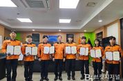 브릿지저널 정보영 기자 | 천안서북소방서는 지난 27일 하트세이버(Heart Saver) 및 트라우마세이버(Trauma Saver) 인증서 수여식을 개최했다고 밝혔다. 이번 수여식은 신속하고 헌신적인 구급활동으로 소중한 생명을 구한 구급대원들의 공로를 인정하기 위해 마련됐다. 이날 세이버 수여 대상자 24명 중 하트세이버 6명(소방장 김원형‧김대섭, 소방교 백민선‧유한조, 소방사 홍영기‧곽민성)과 트라우마세이버 1명(소방교 이호성) 등 총 7명이 인증서를 받았다. 수여 대상자들은 심정지 환자를 심폐소생술로 소생시키거나, 중증외상 환자에 대한 신속한 평가와 적절한 처치를 통해 손상을 최소화하는 등 현장에서의 탁월한 대응으로 생명을 구한 공을 인정받았다. 수상자들은 “생명을 살리는 일이야말로 구급대원의 가장 큰 사명이라고 생각한다”며 “앞으로도 시민의 생명을 지키기 위해 최선을 다하겠다”고 소감을 전했다. 김종욱 천안서북소방서장은 “시민의 생명을 지키기 위해 헌신과 노력을 아끼지 않은 대원들의 사명감에 깊이 감사드린다”며 “앞으로도 시민이 안심할 수 있는 안전한 천안을 만들기 위해 최선을