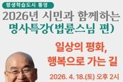 브릿지저널 김경미 기자 | 통영시는 오는 4월 18일 오후 2시, 통영시민문화회관 대극장에서 '평생학습도시 통영, 2026년 시민과 함께하는 명사초청 강연'의 두 번째 순서로 법륜스님을 초청해 명사 특강을 개최한다. 평화재단 이사장이자 정토회 지도법사인 법륜스님은 즉문즉설 형식의 강연을 통해 사람들의 다양한 고민에 대해 명쾌한 해법을 제시하며 큰 호응을 얻고 있다. 이번 강연은 ‘일상의 평화, 행복으로 가는 길’을 주제로 진행되며, 특히 법륜 스님 특유의 ‘즉문즉설(卽問卽說)’이 예정돼 있어 기대를 모으고 있다. 정해진 주제 없이 현장에서 시민들이 직접 작성한 고민과 번뇌를 ‘즉문함’에 넣으면, 스님이 이를 즉석에서 선택해 명쾌한 해답과 위로를 건네는 소통형 강연으로 꾸며질 예정이다. 특히 삶의 무게와 고통 속에서 길을 찾는 시민들에게 스님의 지혜로운 통찰이 담긴 답변이 실시간으로 전해지며 깊은 공감과 치유의 장이 될 것으로 기대된다. 참석을 희망하는 시민은 사전 신청 없이 당일 현장 방문을 통해 자유롭게 참여할 수 있다. 시 관계자는 “이번 강연이 시민들에게 마음의 여