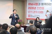 브릿지저널 김경미 기자 | 이현재 하남시장은 20일 감일동 행정복지센터에서 열린 ‘주민과의 대화’에서 “방아다리길 연결도로 개통과 연계한 버스 노선 개편 및 생활 SOC 확충을 통해 감일신도시 주민들의 정주 여건을 개선하겠다”라고 밝혔다. 방아다리길 연결도로는 하남시 감일동과 서울시 송파구 방이동을 잇는 구간으로, 오는 2026년 6월 최종 준공될 예정이다. 이현재 시장은 “도로 개통에 맞춰 올림픽공원 방향으로 버스 노선을 집중 조정함으로써 주민들의 교통 편의를 높이겠다”라고 설명했다. 아울러 학생들의 안전한 보행 환경 조성을 위한 교량 신설 사업도 속도를 낸다. 신우초등학교 앞 인도교 확장 공사는 학생들의 안전을 고려해 오는 4월 준공할 예정이며, 10단지에서 8단지 상가를 연결하는 벌말천 인도교는 1월 중 주민설명회를 거쳐 6월 준공 및 개방을 목표로 하고 있다. 이 시장은 지역 문화 인프라 구축의 핵심인 감일 박물관 건립 상황도 공유했다. 감일지구 출토 유물을 전시할 박물관은 이달 중 건축 공사에 착공하며, 총 152억 원의 사업비를 투입해 2027년 하반기 준공될 예정이다. 다만, 감일종합복지타운은 시의