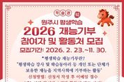 브릿지저널 윤나영 기자 | 원주시 평생교육원 학습관은 오는 11월 말까지 2026년 원주시 평생학습 재능기부 참여자 및 활동처를 수시 모집한다. 재능기부 참여자는 평생교육 강사, 학습동아리 등 자신의 재능을 무보수로 나눠주고 싶은 개인 또는 팀이다. 재능기부 활동처는 프로그램 참여를 희망하는 관내 경로당과 요양원, 복지관 등 관람 인원이 15명 이상인 곳이다. 학습관은 오는 4월부터 11월까지 매달 희망 활동처 2곳과 재능기부 팀 1∼3곳을 연계해 프로그램을 운영할 계획이다. 모집 기간은 2월 23일부터 11월 30일까지다. 학습관 또는 원주시 통합예약플랫폼 홈페이지에서 서식을 내려받아 작성한 후, 이메일 제출하면 신청할 수 있다. 자세한 사항은 학습관 평생교육팀으로 문의하면 된다. 윤석재 학습관장은 “평생학습으로 배운 재능을 지역의 소외계층과 함께 나눔으로써 재능기부 문화를 활성화할 수 있도록 많은 관심과 참여를 부탁드린다”라고 말했다.