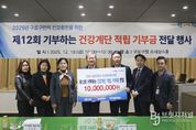 브릿지저널 김경미 기자 | 구로구가 이달 19일 구청 르네상스홀에서 ‘제12회 걸으며 기부하는 건강계단 적립금 기부 행사’를 개최했다. ‘걸으며 기부하는 건강계단’은 구청 내 설치된 건강계단 이용자 수에 따라 고대구로병원이 1인당 20원의 기부금을 적립하는 사업이다. 올해 12월을 기준으로 47만 명이 참여했으며, 연말까지 50만 명 달성을 목표로 하고 있다. 이날 행사에는 장인홍 구로구청장을 비롯해 민병욱 고대구로병원 병원장, 이경애 구로희망복지재단 사무국장 등이 참석해 고대구로병원에서 마련한 기부금 1,000만 원을 구로희망복지재단에 전달하고 감사의 인사를 전했다. 기부금은 긴급 지원이 필요하거나 공적 지원을 받지 못하는 복지 사각지대에 놓여 있는 어려운 이웃들을 위해 사용될 예정이다. 장인홍 구로구청장은 “건강계단에 꾸준히 참여해주신 구민 여러분과 기부를 통해 뜻을 함께해주신 고대구로병원에 감사드린다”며 “앞으로도 어려운 이웃을 돕기 위한 따뜻한 나눔 활동을 지속적으로 운영하겠다”고 말했다.