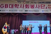 브릿지저널 정보영 기자 | 경상북도는 26일 경북여성가족플라자에서 ‘2025 GB(경북)대학사회봉사단 성과평가회’를 개최하고, 2025년 한 해 동안의 지역사회 곳곳에서 자원봉사로 활약한 GB대학사회봉사단의 성과를 공유하는 시간을 가졌다. 행사에는 GB대학사회봉사단 자원봉사자 300여 명과 김진현 경북도 안전행정실장, 최재혁 GB대학사회봉사단 단장(경북전문대학교 총장), 장유석 도종합자원봉사센터 이사장, 참여대학 총장을 비롯한 시군 자원봉사센터 관계자가 참석했다. 이날 행사에서는 2025년 모범적인 자원봉사활동으로 활약을 펼친 단원 61명은 경북도지사상, 경북도의장상, 경북교육감상, GB대학사회봉사단장상, 경상북도종합자원봉사센터 이사장상 등을 받았다. 이어서 GB대학사회봉사단과 시군 자원봉사 센터가 협업한 우수 자원봉사 사례발표 경진대회가 진행됐다. 이번 경진대회에는 구미대학교, 대경대학교, 선린대학교, 경북전문대학교, 경북보건대학교, 경북과학대학교 등 총 6개 대학이 참여해 올해 펼친 사업 성과와 우수 활동을 발표하며 실력을 겨루었다. 김진현 경상북도 안전행정실장은 “지역사회를 위해 시간과 열정을