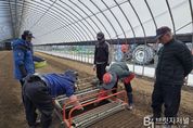 브릿지저널 정보영 기자 | 예천군은 26일, 감천면 석송로 소재 인삼 재배 농가에서 ‘내재해형 인삼 이중구조하우스’를 활용한 인삼 정식을 실시했다. 사업의 주요 목적은 고온 피해를 최소화할 수 있는 재배환경을 구축하고, 인삼의 안정적인 생산 기반과 고품질 생산 체계를 마련하는 데 있다. 이중구조하우스는 연면적 394㎡ 규모로 조성됐으며, 백색 직조필름 피복, 차광망, 자동개폐장치, 관수·관비시설 등 주요 기자재를 갖췄다. 지난 10월 준공한 해당 시설은 첨단 기능과 내재해 구조를 갖춘 것이 특징이다. 특히 천장이 약 60cm 열려있는 구조로 설계돼 내부의 뜨거운 공기를 자연 배출할 수 있고, 기술이전 품목인 백색 직조필름을 적용해 빛을 고르게 확산시킨다. 이를 통해 기존 해가림 시설 대비 고온 피해는 70% 이상 줄고, 수확량은 30~50% 증가할 것으로 기대된다. 또한 하우스 출입문의 너비를 2.8m로 확장해 55마력급 중형 트랙터 등 농기계가 내부까지 진입할 수 있도록 해 노동력 절감과 기계화 기반도 확보했다. 손석원 예천군농업기술센터소장은 “지속되는 이상기후에 대응하기 위해 내재해